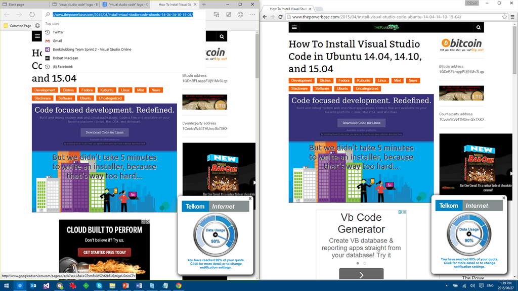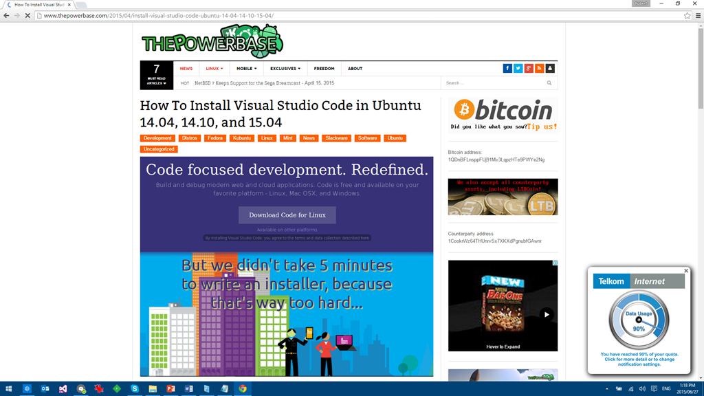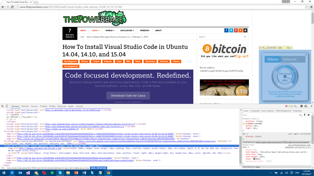 The following image is a screen shot I took of a webpage in Chrome. If you view that same website, you will get a different experience because Telkom is using the same techniques as a man-in-the-middle attack to edit the code which the website uses, to serve Telkom’s own content.