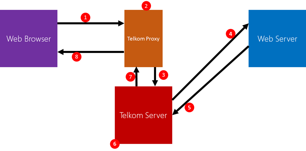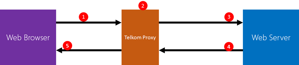 2. It hits the Telkom proxy, which is meant to help speed up the Internet by providing content to you from a closer location. They may not have a proxy, many ISPs do this so that they can provide a pure & secure experience.