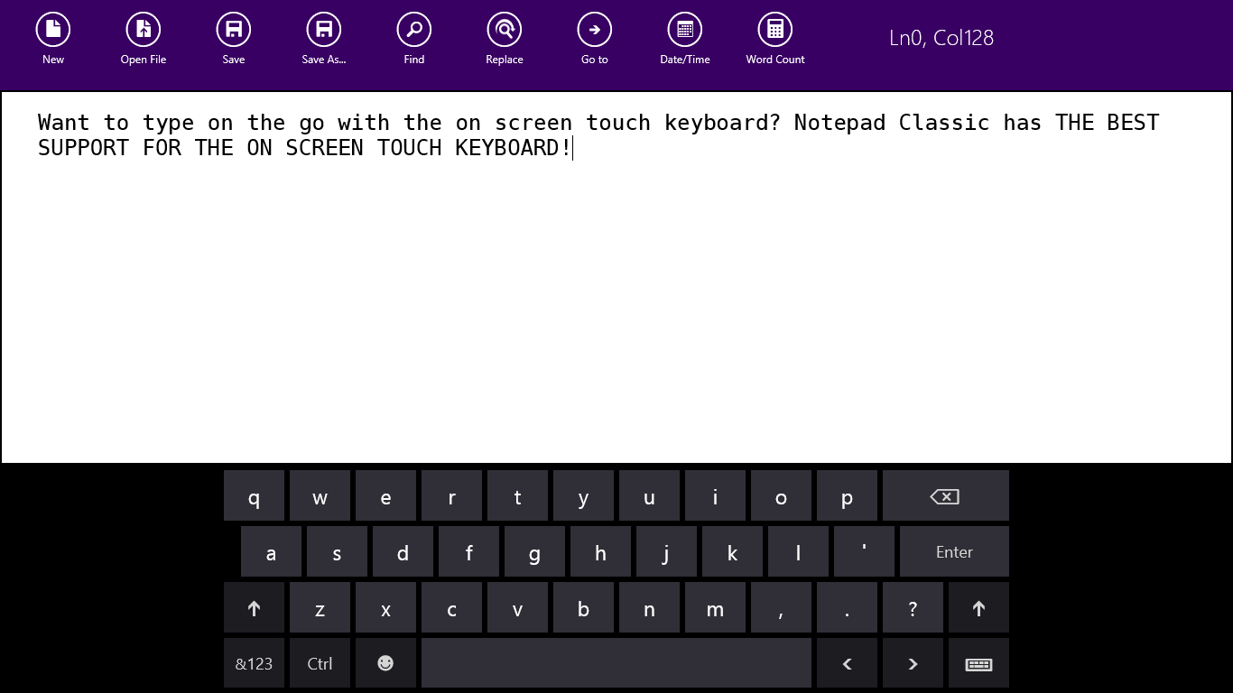 Sometimes you just need a simple tool, for a simple job and while Microsoft offers the FANTASTIC OneNote MX available for Windows 8 to use, it may is just too much. With that in mind, let me introduce a simpler text editor, NOTEPAD CLASSIC! Notepad Classic is that - a simple text editor! Enjoy