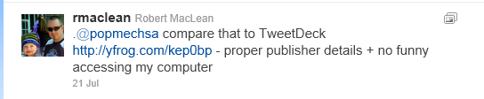 I was put onto this interesting feature of Twitter by Scott Hanselman, where needs repeating. When you use Twitter to send a tweet all of your followers will get it, unless when you start the tweet with a name (called an @ reply). For example: