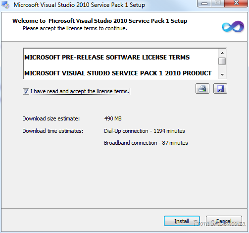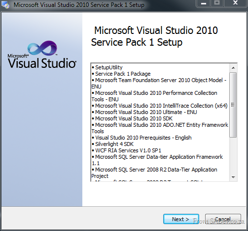 This step is no specifically needed as the VS SP will include this automatically, however I personally like the idea of doing it manually and making sure .NET 4 apps continue to work before I continue to the VS install.