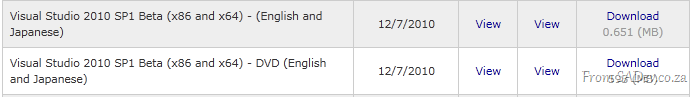 What I had done was to download the smaller installer version (less than 1Mb) which means it first figures out what is needed and then downloads the rest. This is great for some people as the download size is less, however since I live in South Africa (read: bandwidth is a luxury) and I work with 300+ other developers it is better for me to get the “DVD” labelled one which is bigger (in my case 103Mb bigger) but contains everything in one go so it can be shared easily and the bandwidth hit just once!